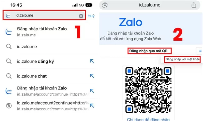 Bước 3: Truy cập vào đường link id.zalo.me, sau đó quét mã QR hoặc số điện thoại để đăng nhập tài khoản Zalo thứ 2.