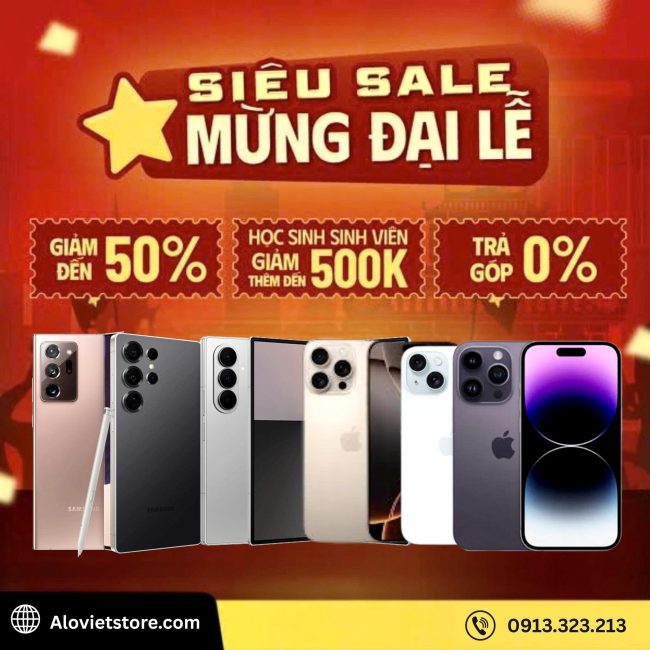 Alovietstore là nơi bạn dễ dàng tìm thấy mã giảm giá điện thoại, chương trình thanh lý rẻ, ưu đãi sinh viên và khuyến mãi iPhone – Samsung. Đặc biệt, với chương trình quà tặng Đại lễ 2/9, khách hàng không chỉ mua máy giá rẻ mà còn nhận thêm hàng loạt phần quà hấp dẫn.